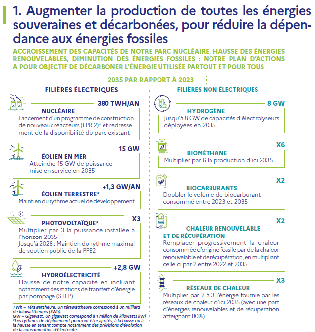 - Les objectifs seront déclinés régionalement via les zones d’accélération des ENR (ZAER), avec un rôle accru des comités régionaux de l’énergie pour assurer la cohérence territoriale.