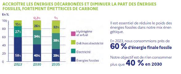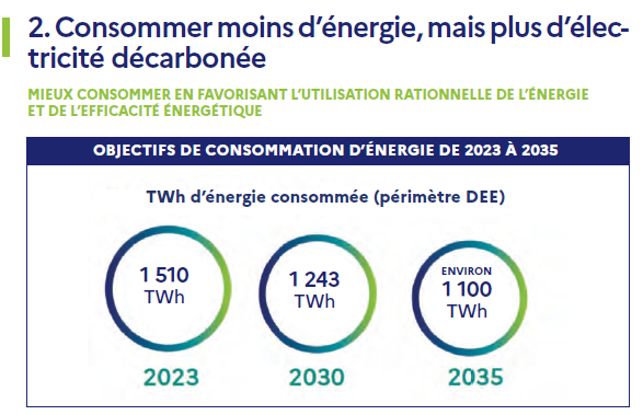 Transition énergétique et maîtrise de la demande Les objectifs de réduction de la consommation d’énergie finale (18 % d’ici 2030, 27 % d’ici 2035) sont ambitieux mais peu crédibles car non soutenus par des mesures concrètes nouvelles